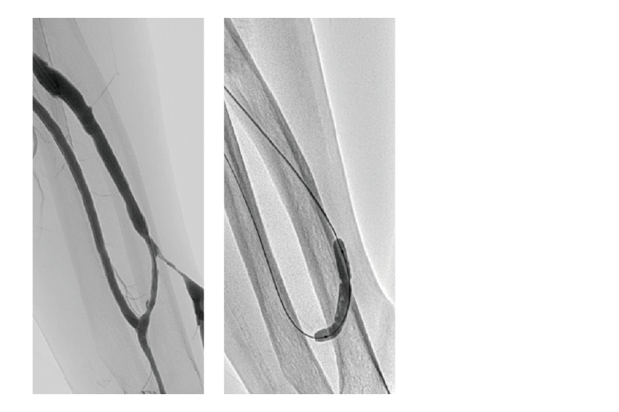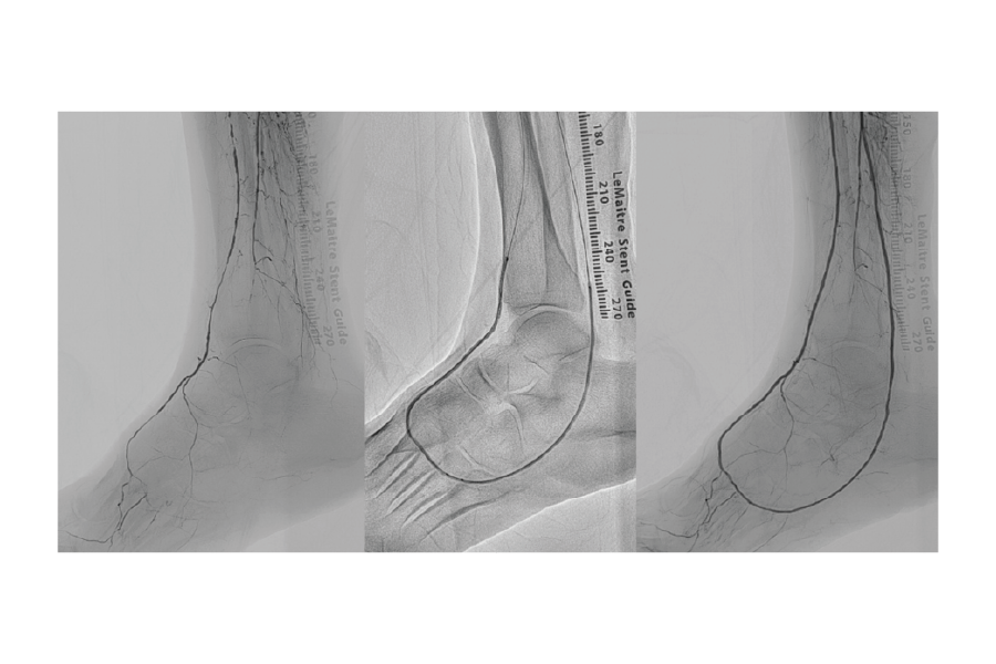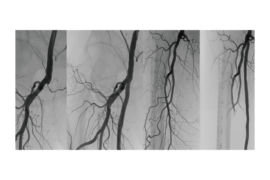 足の指先に潰瘍がある患者様に対して、膝下の動脈の血管内を治療しました。